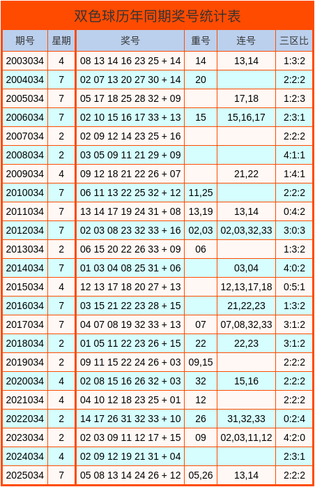 三区比数据分析:积年同时三区比为44:51:43,客岁同时三区比为2:2:2。