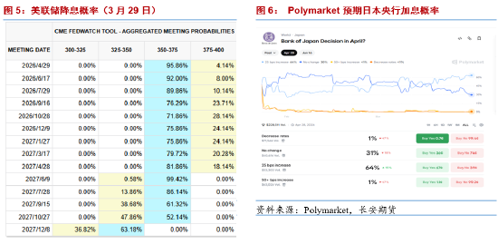 这种“好意思元流动性边缘紧缩”与“外洋滞胀风险上升”的组合,正在重塑内行宏不雅走动逻辑。一方面,好意思元流动性收紧径直举高了内行财富的融资成本,压制了估值;另一方面,外洋主要经济体为搪塞滞胀风险可能被动推迟降息甚而转向紧缩(如日本)。以此来看,商场对好意思联储关于流动性的气派变得较为深奥,行动石油的净出口国,好意思国可能不错和高CPI、高油价共生。3月27日,商场对将来一年各月份的加息25bp概率均下落了10个百分点,降息概率小幅莳植。商场关于败落的狞恶也有可能倒逼好意思联储保管现存利率不变,进而为黄金价钱底部提供一定的援助。