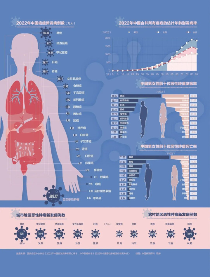 许多癌症确诊患者都有“悔不妥初”的感叹。国度癌症中心发布的最新数据败露,2022年国内新发恶性肿瘤患者482万例,亏损257万例,肺癌、结直肠癌、甲状腺癌、肝癌和胃癌病例数位列前五位。尊府败露,与推崇国度比拟,中国的肿瘤早期诊断率偏低,同期肿瘤筛查和防护措施存在不及,许多肿瘤患者在确诊时已处于中晚期。