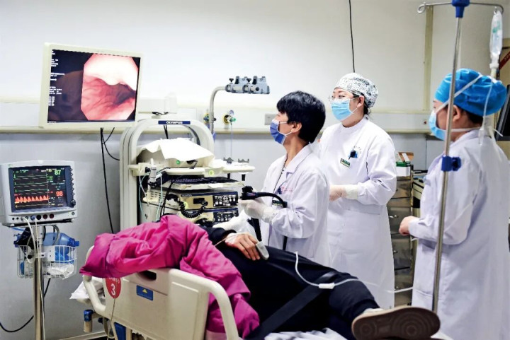 医务东谈主员为患者进行上消化谈肿瘤筛查。图/视觉中国