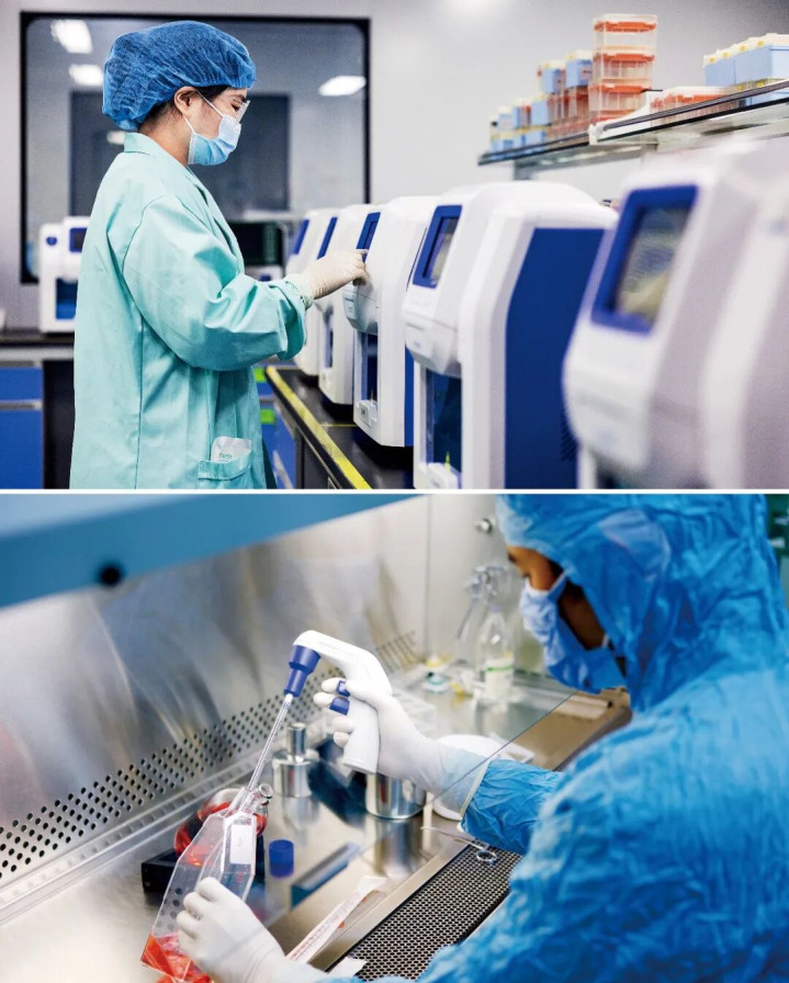 下图:接洽东谈主员在昆明延安病院“肿瘤免疫防治接洽重心实验室”作念实验。图/视觉中国