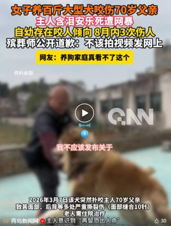 3月7日,江苏一女士找到宠物殡葬师思给家里的阿拉斯加犬作念安乐死,因为狗狗不啻一次咬东谈主,她是真没招了。此次情况终点严重,她70岁的老父亲平直被咬进手术室,咬东谈主现场目不忍视。