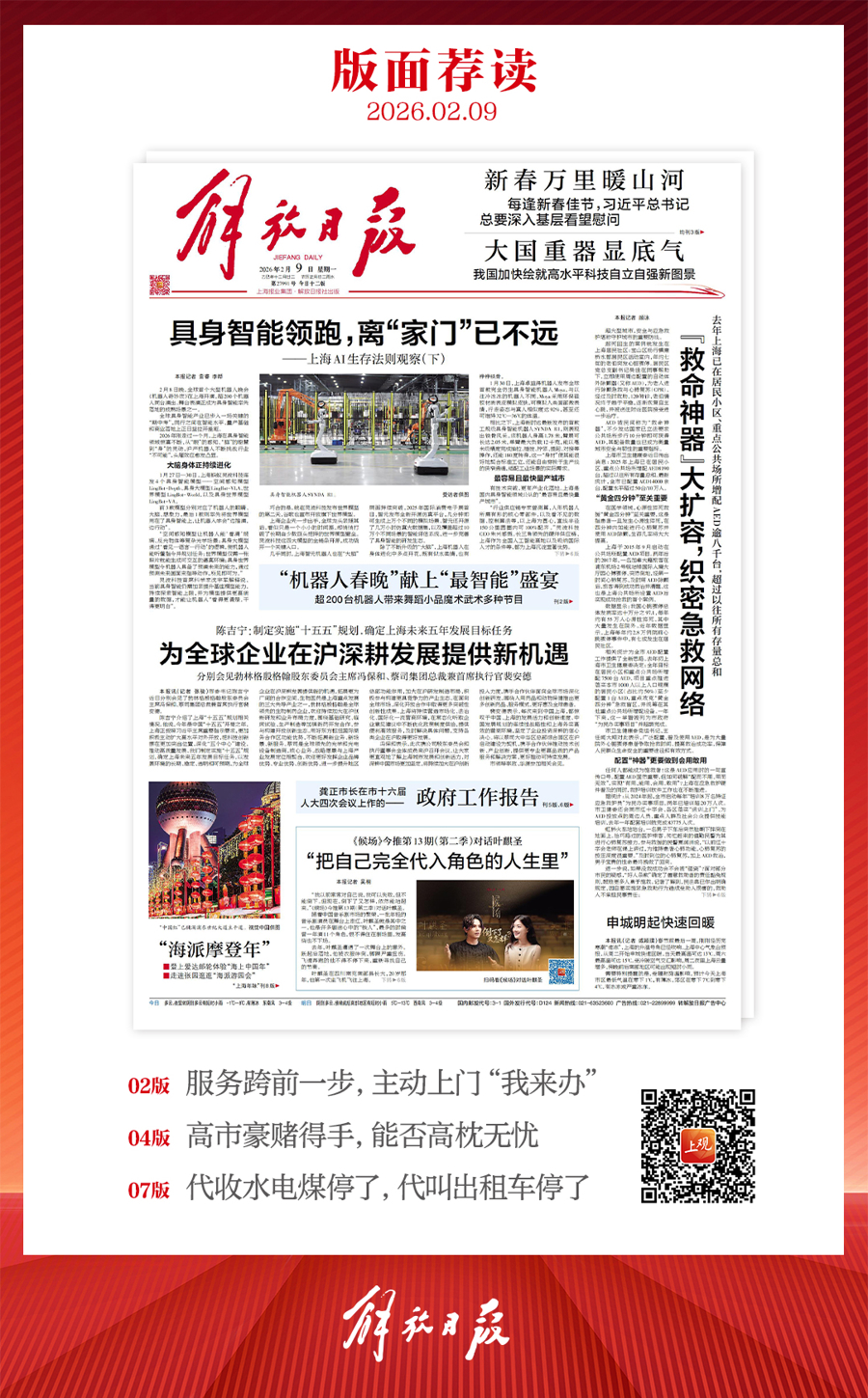 早上好!上不雅新闻『早读』来啦!2026年2月9日 星期一 农历腊月廿二上海多云,0~8℃