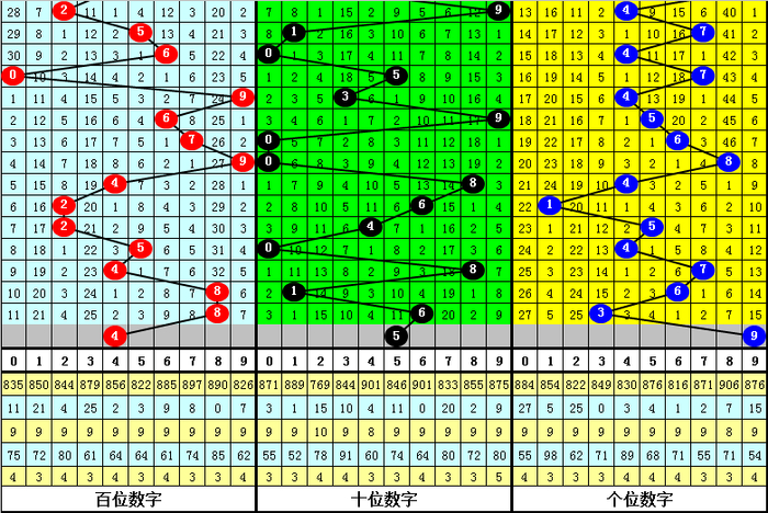 (2)在号码频次方面,开出个数最少的三个号码为:1、3、0,一般来说这三个号码不会同期出现;开出个数最多的四个号码辞别为:4、6、9、5,本期看好这四个号码中包含1-2个开奖号码,提防号码4。