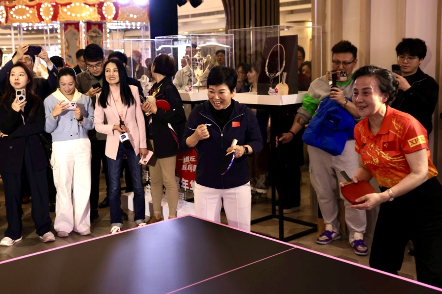 “灵呃!”“接介好啊!”在乒乓球台前,上海话穿插其间,第一百货市场内一片其乐融融的情状。海外乒联终生名誉主席徐寅生担任攀附团团长,乒乓球寰宇冠军施之皓、曹燕华、倪夏莲获颁攀附官荣誉奖牌。上海老牌乒乓顶流明星可能都聚在这儿了。